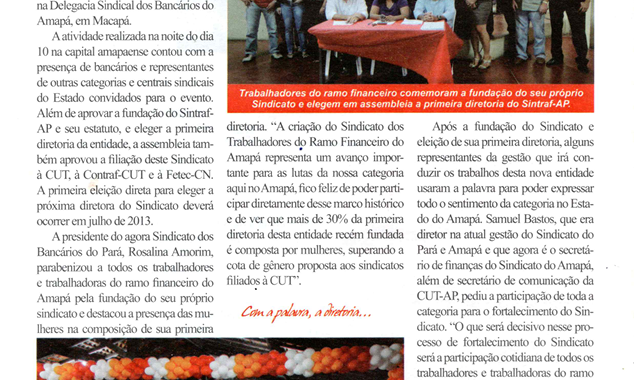 O Sindicato dos Trabalhadores do Ramo Financeiro do Estado do Amapá (Sintraf-AP) completa, neste ano, 15 anos de história e conquistas. Para fortalecer a memória e eternizá-la, relançamos algumas edições do jornal ‘Tribuna Bancária’, que contam partes importantes da história da entidade.